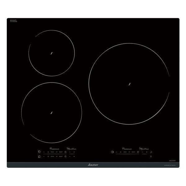 Table induction – 3 foyers dont 1 zone Amplitude Ø 28 cm 4 kW – 13 niveaux de puissance dont Booster – 3 accès directs par foyer – 3 minuteries 99 minutes – Fonction Boil : la table ajuste automatiquement la puissance nécessaire pour porter à ébullitio