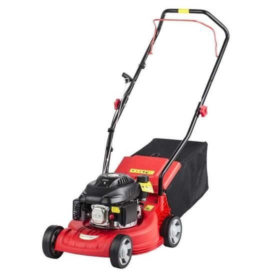 | Description du produit | Bac de ramassage en toile de 50 litres Carter en polypropylène 40 cm largeur de coupe Guidon ergonomique et repliable Moteur 4 temps 99 cc OHV Réglage sur roues des 3 hauteurs de coupe (25 -> 65 mm) Tondeuse thermique poussée |